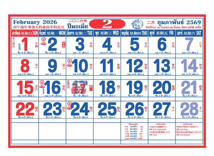วันอังคารที่ 17 กุมภาพันธ์ 2569 วันตรุษจีน (วันขึ้นปีใหม่จีน)