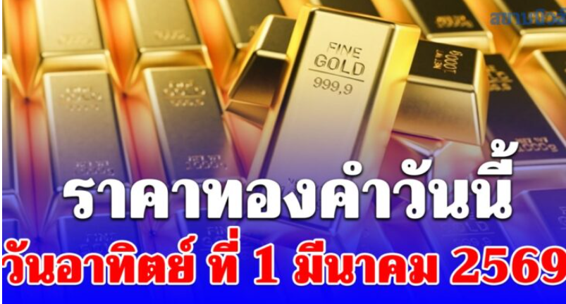 ล่าสุด วันที่ 1 มีนาคม 2569 มีรายงานว่า ราคาทองคำยังคงเท่าเดิมไม่เปลี่ยนแปลง โดยมีรายละเอียดดังนี้