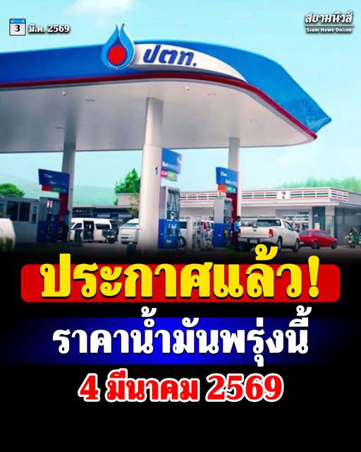 อัปเดตแล้ว ราคาน้ำมันพรุ่งนี้ 4 มีนาคม 2569 โดยราคาน้ำมันขายปลีกในพื้นที่กรุงเทพฯ ที่ยังไม่รวมภาษีบำรุงท้องถิ่นวันนี้ เป็นดังนี้