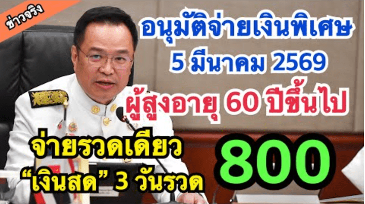 อนุวัตจัดให้ อนุมัติจ่ายพิเศษเงินสงเคราะห์ ผู้สูงอายุ 60ปีขึ้นไปรับเงินสูงสุด800บาทโอนเข้าทุกคนBy Pen-Nat / March 5, 2026 อนุวัตจัดให้ อนุมัติจ่ายพิเศษเงินสงเคราะห์ ผู้สูงอายุ 60ปีขึ้นไปรับเงินสูงสุด800บาทโอนเข้าทุกคน