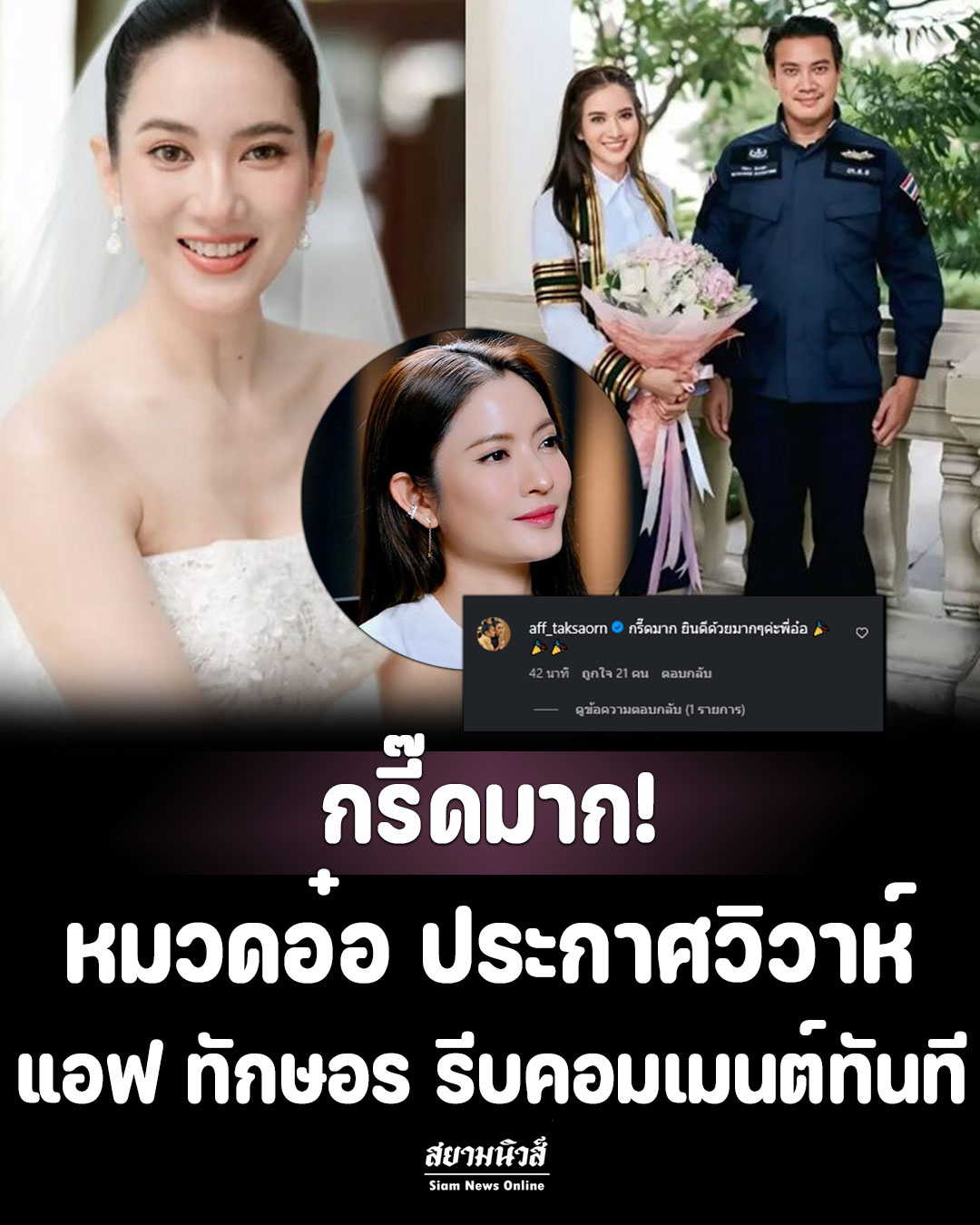 ท่ามกลางคอมเมนต์สุดยินดีโดยเฉพาะเพื่อนๆคนบันเทิงคนดัง ร่วมไปถึง แอฟ ทักษอร ที่เข้ามาแสดงความคิดเห็นว่า กรี๊ดมาก ยินดีด้วยมากๆค่ะพี่อ๋อ ซึ่งหมวดอ๋อ ตอบกลับด้วยว่า ขอบคุนค่าาา มาเปนเพื่อนเจ้าบ่าวด้วยน้าาา
