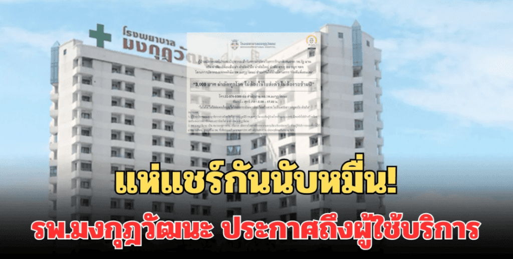 แห่แชร์กันนับหมื่น! รพ.มงกุฎวัฒนะ ประกาศแล้ว ถึงผู้ใช้บริการทุกคน.!!