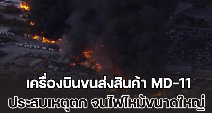 เครื่องบินขนส่งสินค้า MD-11 ซึ่งเคยประจำการสังกัดการบินไทย ประสบอุบัติเหตุตก จนเกิดไฟไหม้ขนาดใหญ่