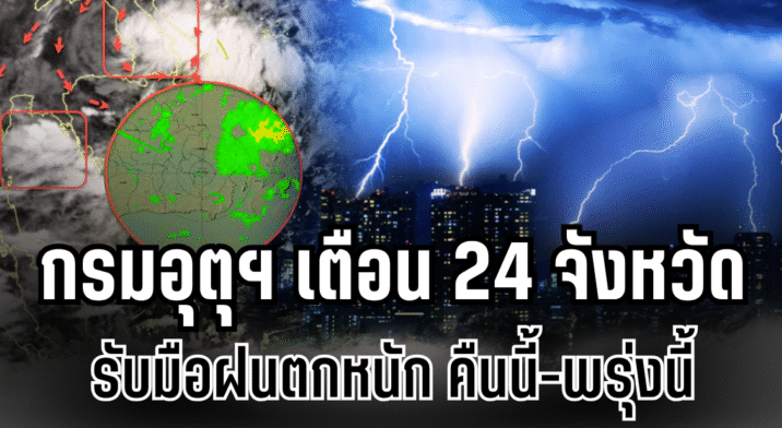 ประกาศเเล้ว!!! กรมอุตุฯ เตือน 24 จังหวัด รับมือฝนตกหนักถึงหนักมาก คืนนี้-พรุ่งนี้