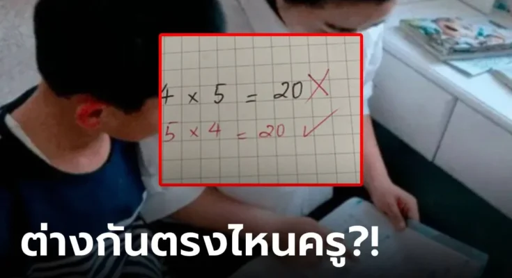 พ่อวีนฉ่ำ ลูกคิดเลข 4×5=20 ครูตรวจว่าผิด เห็นเฉลยคำตอบ 4×5=20 ยิ่งฉุน งงต่างกันตรงไหน แต่ฟังครูอธิบายคำเดียว ยอมรับเป็นตัวเองที่คิดผิด โจทย์คณิตศาสตร์ในบทเรียนของเด็กนักเรียนในปัจจุบัน หลายข้อต้องใช้สมองคิดวิเคราะห์อย่างหนัก แม้กระทั่งผู้ใหญ่ยังเรียกได้ว่าแทบ “สมองระเบิด” เมื่อช่วยลูกๆ แก้โจทย์การบ้าน และมีหลายครั้งที่กลายมาเป็นประเด็นถกเถียงกันไม่จบสิ้น ทั้งความไม่ชัดเจนของคำถาม วิธีคิดคำนวนที่แตกต่างกัน หรือแม้แต่ข้องใจว่าคุณครูอาจจะตรวจผิดพลาด