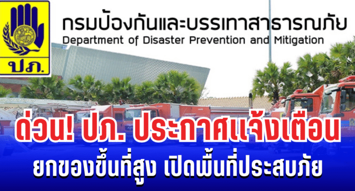 ด่วน! ปภ. ประกาศเเจ้งเตือน ยกของขึ้นที่สูง เปิดพื้นที่ประสบภัย