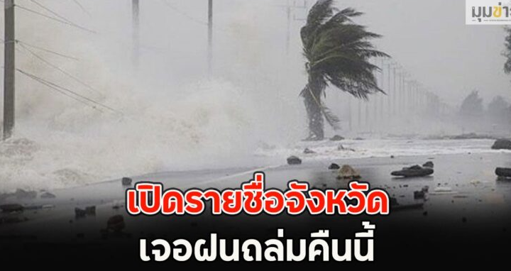 เปิดรายชื่อจังหวัด เจอฝนถล่มคืนนี้