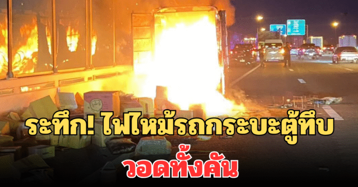 ระทึก! ไฟไหม้รถกระบะตู้ทึบ วอดทั้งคัน